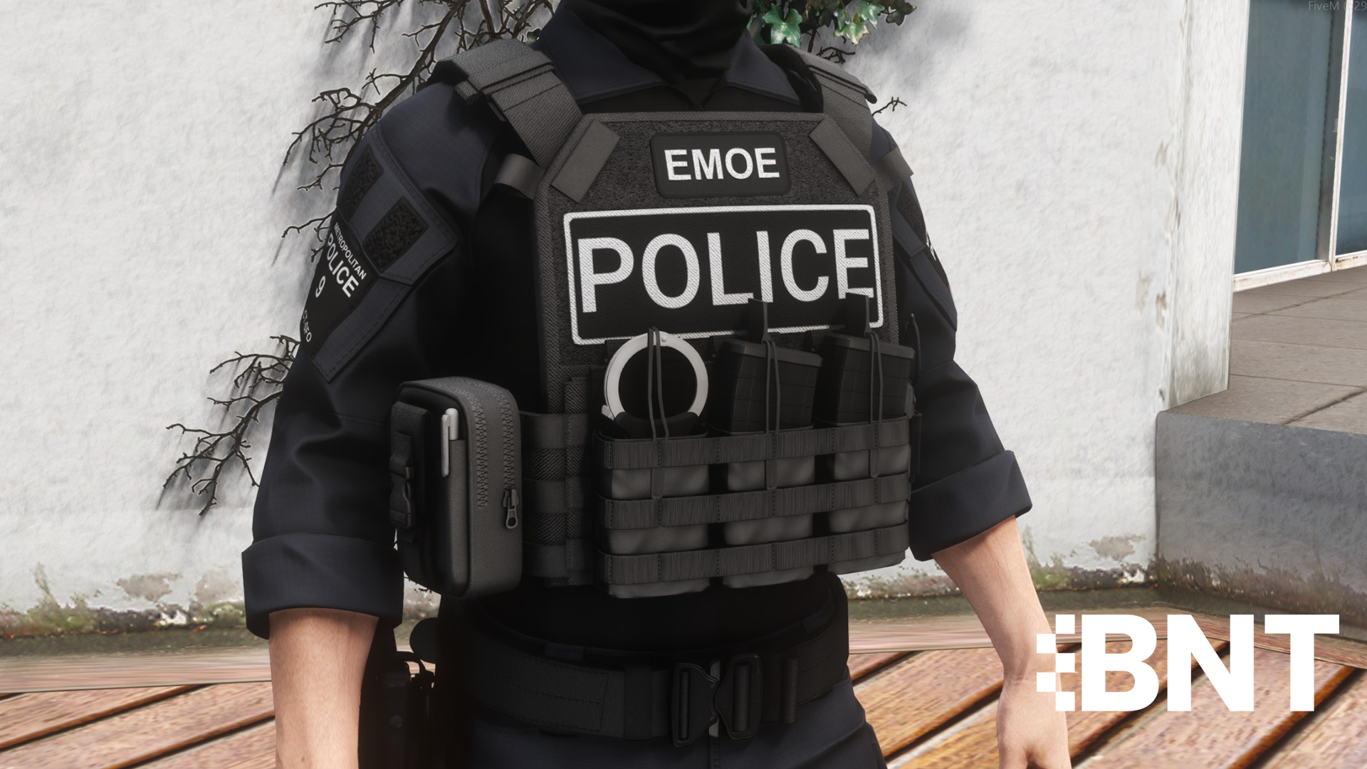 This pack is based on the vests used by the Metropolitan Police. This vest is used by the Mets Counter Terrorism Specialist Firearm Officers (CTSFO). The vest includes accurate placements and materials. Both kits are setup for practicality to supply each officer with the equipment needed. Patches can be added or replaced to fit any roleplay server. It works well with existing clothing made by other developers such as FireBuzzard's and Pyro's G3s.
